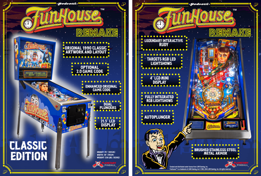 - Limited Edition (limited to 750 units) – 9.299€ plus VAT https://www.rs-pinball.at/produkt/funhouse-limited-edition/