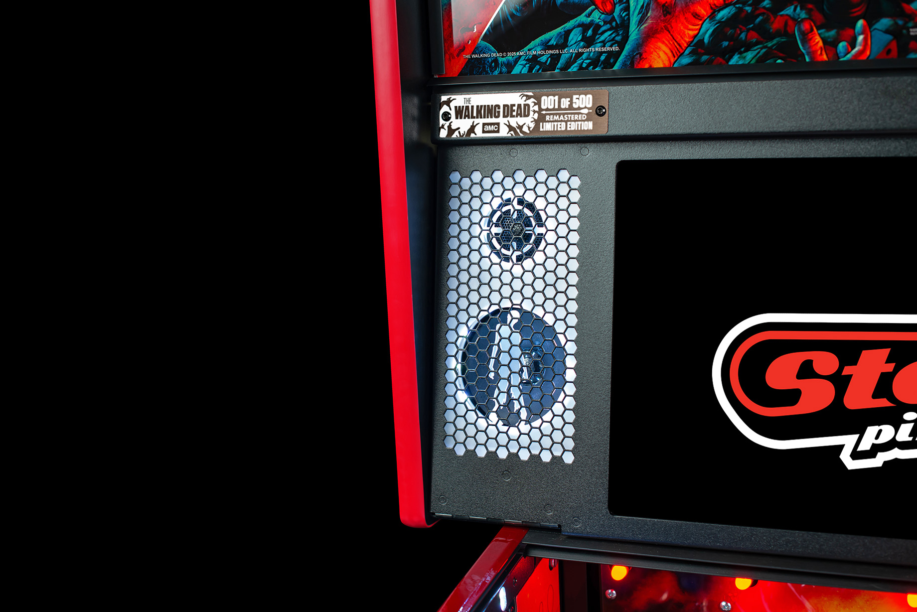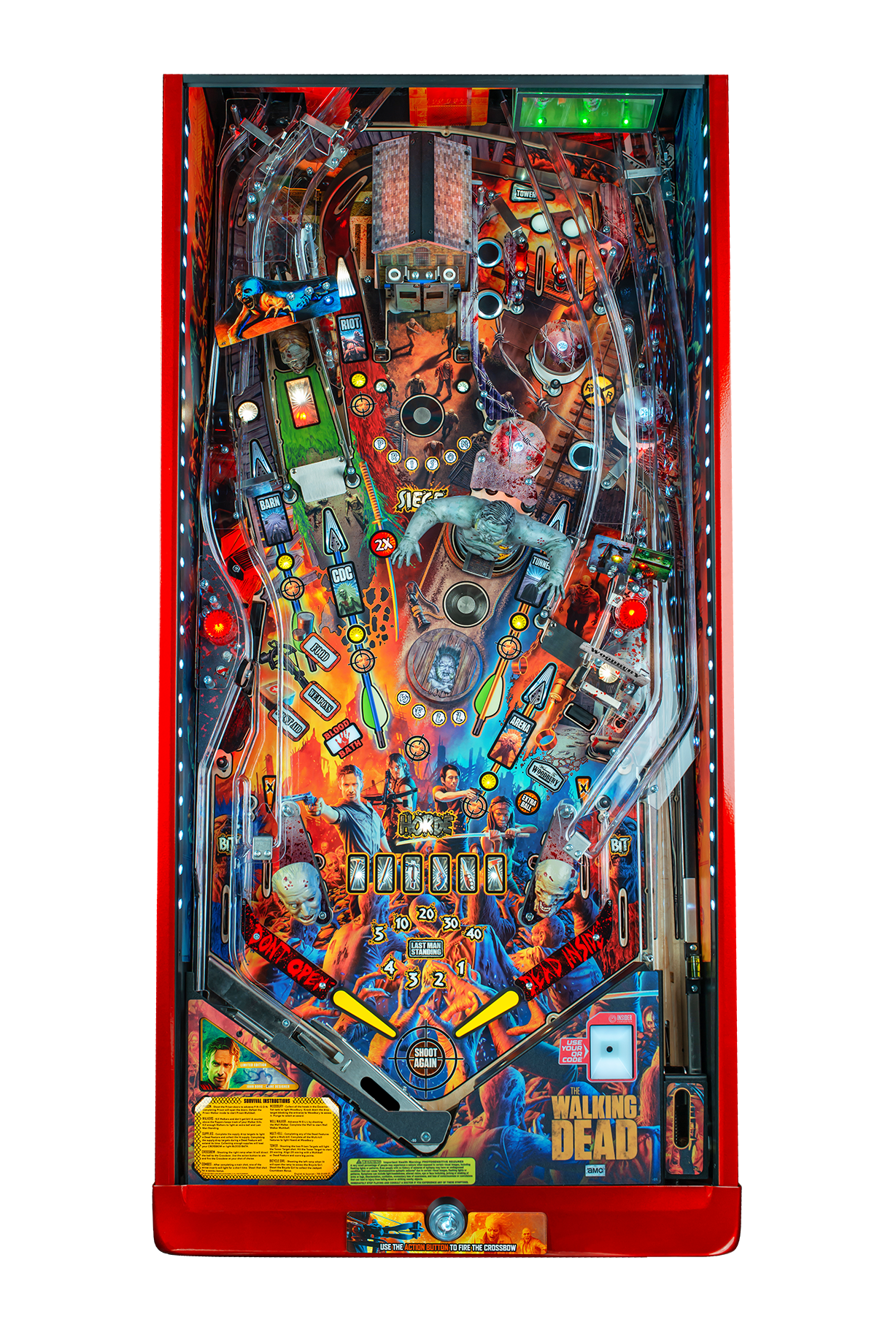 The Walking Dead Remastered features Stern’s next-generation SPIKE 3 technology platform, which includes a larger 18.5” full HD display with true color depth, along with a more powerful processor, and a new high fidelity immersive audio system. Players will get to experience completely overhauled 3D-rendered graphics and custom animations that pay homage to the dot matrix display from the original pinball machine. SPIKE 3 electronics also feature more efficient power handling, improved Wi-Fi support, and wireless headphone capabilities. This release will also feature an updated cabinet lighting customization system designed to allow for internal and external expression lighting on all versions of the game.